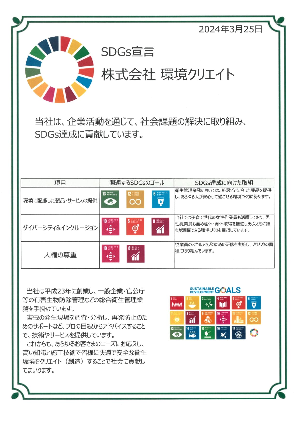 私たち株式会社環境クリエイトでは、『高い知識と施工技術で皆様に快適で安全な衛生環境をクリエイト(創造)することで社会に貢献する』を企業理念とし、その快適な環境の中で皆様が少しでも楽しく過ごして頂けることを目指しています。